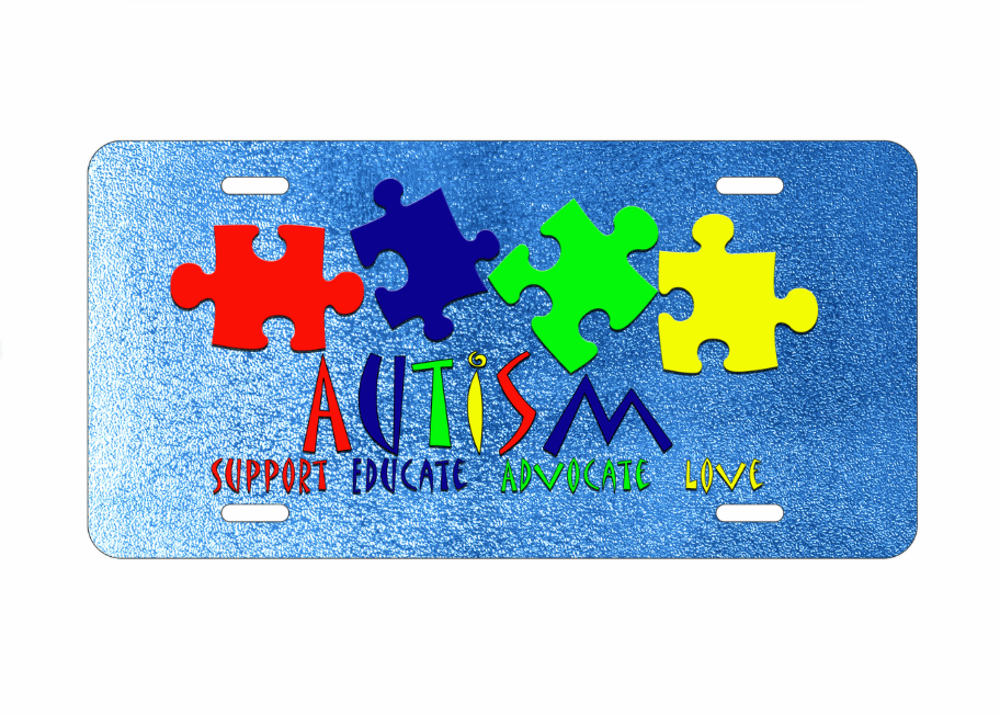Spread awareness and positivity with this Autism Support license plate, decorated with bright puzzle pieces and the words Support, Educate, Advocate, Love. A bold design with a powerful message.