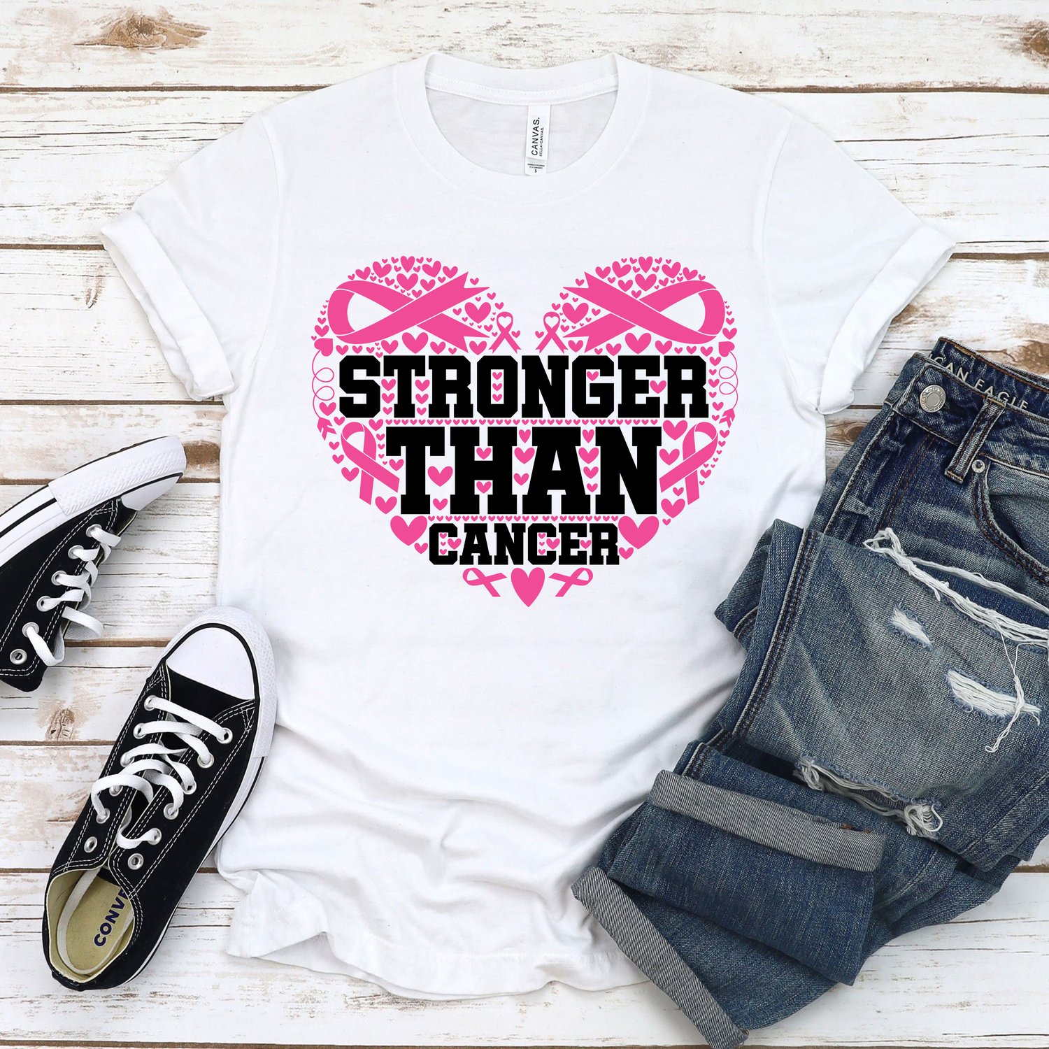 Show the world your strength with our Stronger Than Cancer unisex t-shirt. This inspiring white tee features a bold black statement set inside a heart made of pink ribbons, hearts, and symbols of hope — all representing the fight against breast cancer. Made from soft, premium cotton with a relaxed unisex fit, it’s perfect for survivors, fighters, supporters, or anyone wanting to stand proud in the face of cancer. Wear it to awareness events, charity walks, or anytime you want to share a message of courage and resilience.